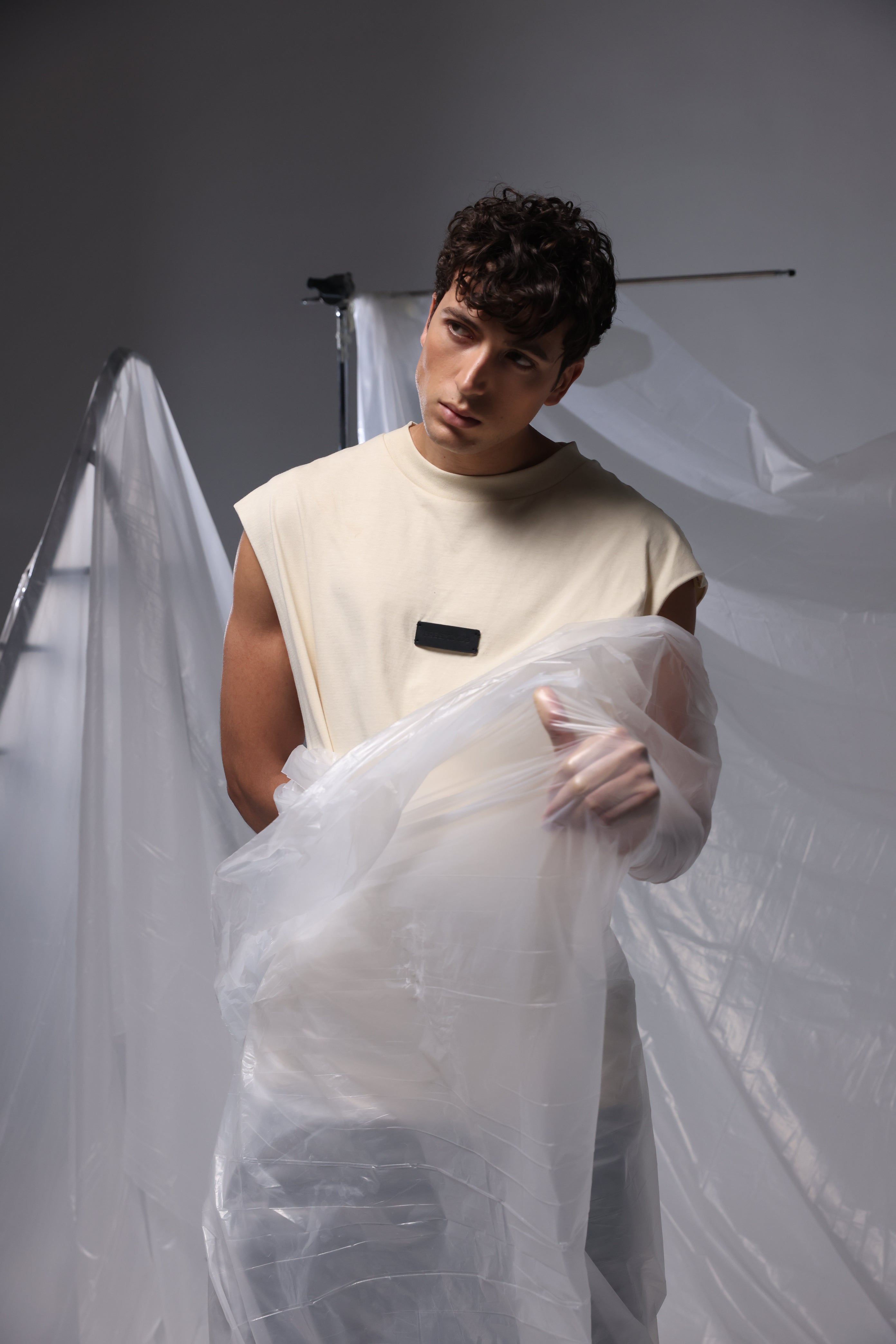 CREAMY SLEEVELESS LOGO T-SHIRT